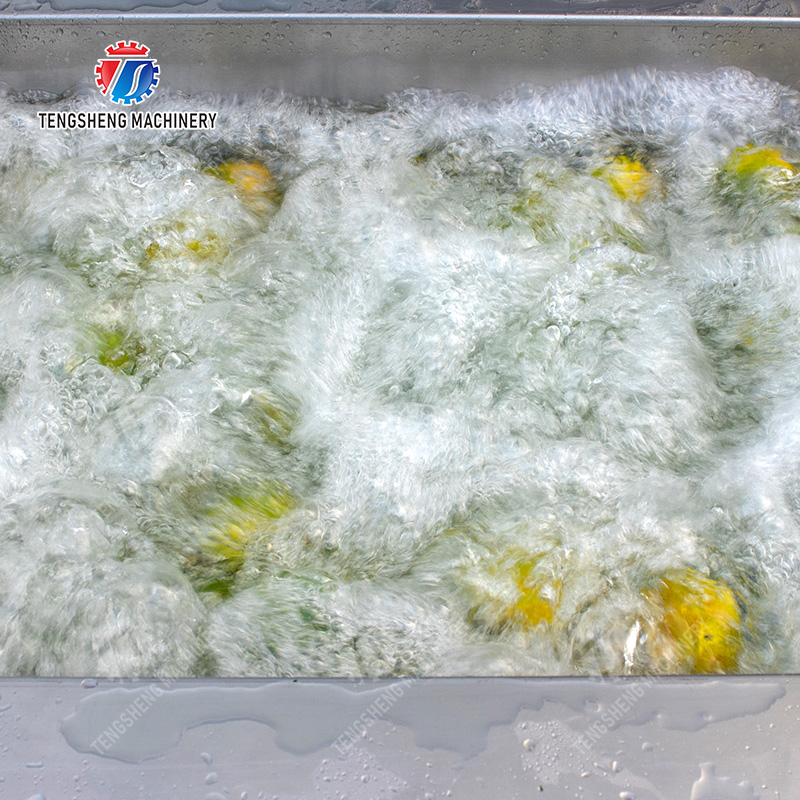 Esta máquina é um equipamento de processamento a favor do meio ambiente com três métodos de limpeza: bolhas de ar, pulverização surfando e de alta pressão de circulação; o ozônio tem as funções da esterilização, da desintoxicação, e da degradação de inseticidas residuais. Pode limpar os frutos em todos os sentidos com os efeitos proeminentes.